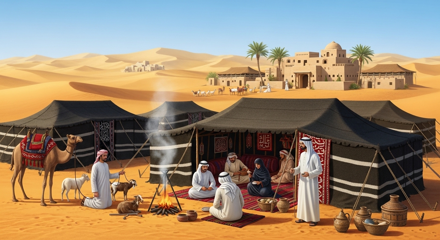Before the discovery of oil brought permanent cities and modern infrastructure, life in the UAE was fundamentally shaped by the rhythm of the desert. The population was divided between the nomadic Bedouin (Badu) of the interior and the more settled people (Hadhar) of the coast and oases. For the Bedouin, life was a cycle of movement, their existence orchestrated around the search for water and pasture. Their material culture—from the tents they lived in to the food they ate—was a masterpiece of adaptation, perfectly designed for a life of mobility and survival in one of Earth’s harshest environments.